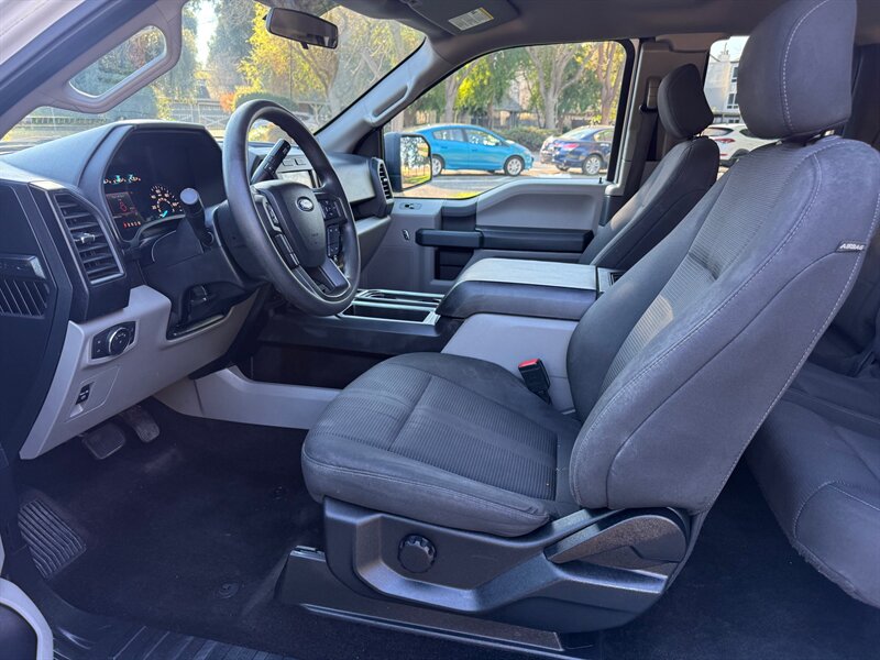 2018 Ford F-150 XLT in Oxford White with Black interior. Powered by a 2.7L EcoBoost twin-turbo V6 producing 325 hp and 400 lb-ft, EPA-rated at 19 MPG city / 24 MPG highway. Factory equipment includes chrome XLT exterior trim and alloy wheels, power windows and locks, remote keyless entry with Ford keypad, cloth front seats (40/console configuration), tilt/telescoping steering, cruise control, air conditioning, AM/FM audio with Bluetooth and USB connectivity via Ford SYNC, rearview backup camera, ABS, traction and stability control, multiple airbags and trailer sway control. Vehicle is in excellent overall condition, clean CARFAX, one owner.